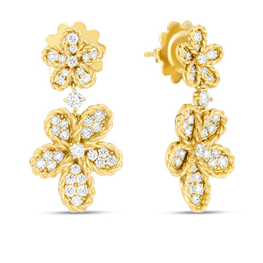 ROBERTO COIN "JASMINE" 18ct YELLOW GOLD DIAMOND & RUBY EARRINGS