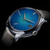 Abyss blue fumé 'grand feu' enamel dial. Lending a new dynamic to the traditional art form of enamelling with the use of a pattern engrained, as if hammered, onto a gold base and four different colour pigments that are melded together. The result is a textured and perfectly mastered fumé aesthetic for a captivatingly contemporary finish. -