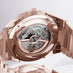 18ct rose gold case with ARunic anti-reflective sapphire. -